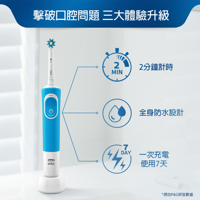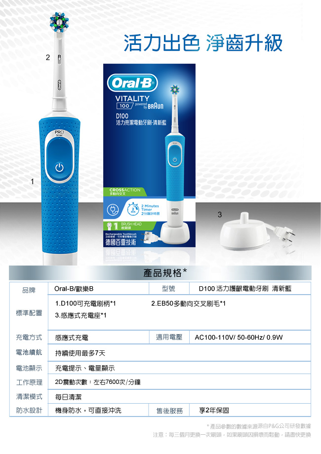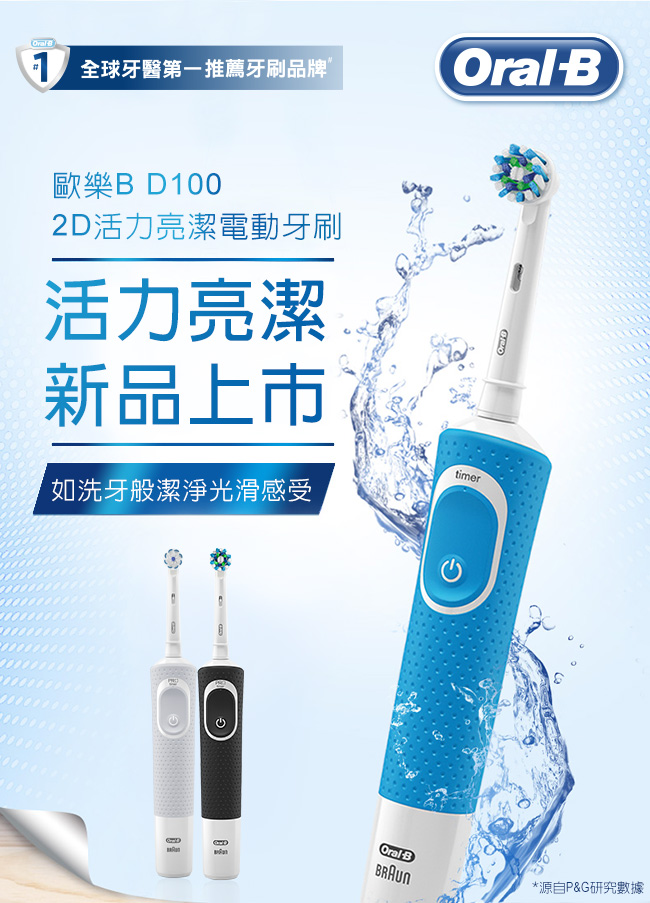 - 品牌:歐樂B 品名:D100活力亮潔電動牙刷 清新藍