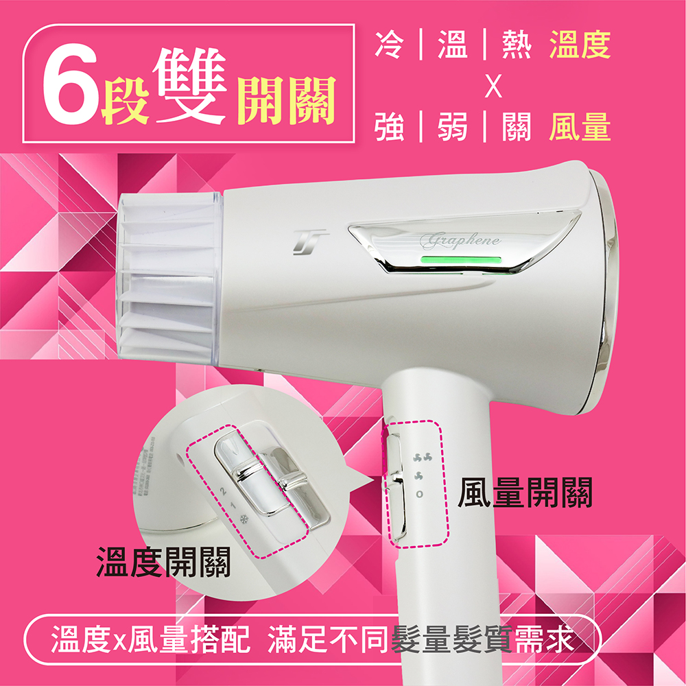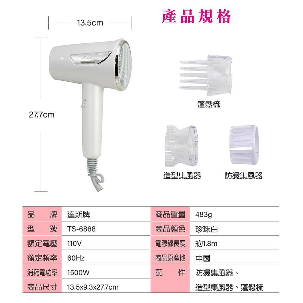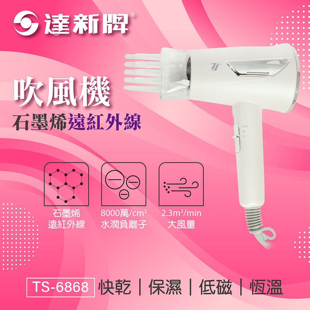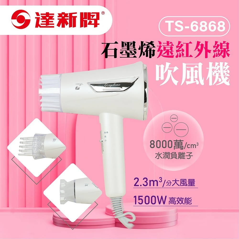【達新牌】石墨烯遠紅外線水潤負離子吹風機(TS-6868)-珍珠白