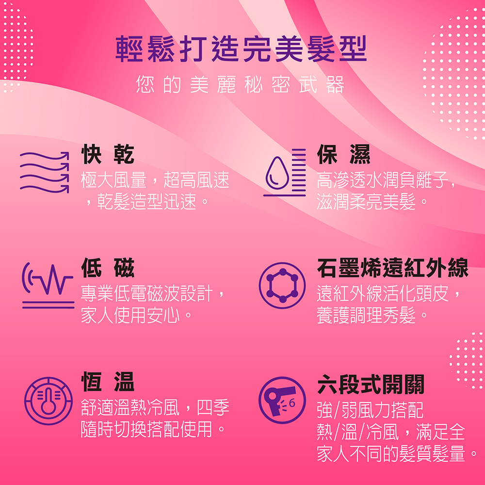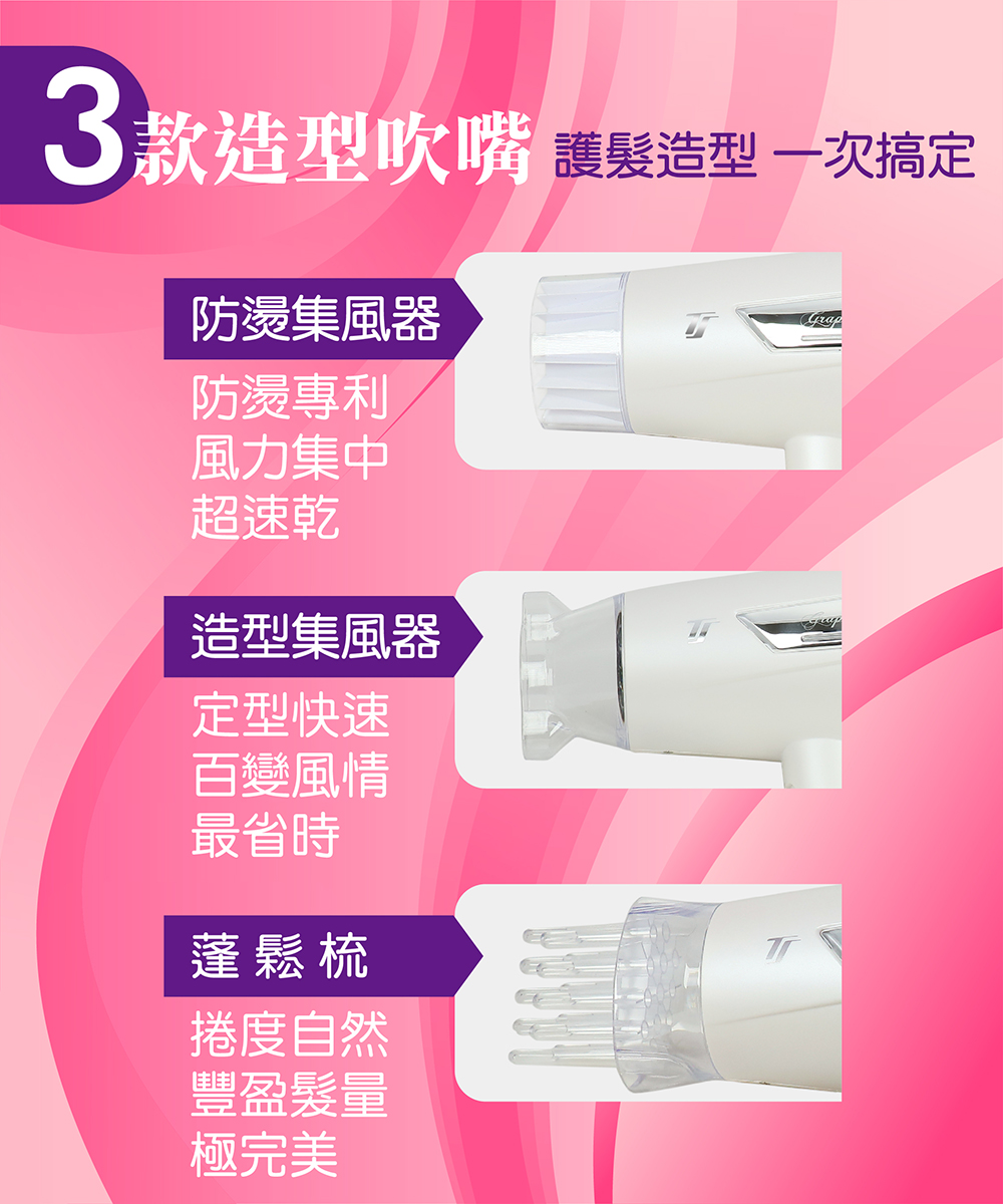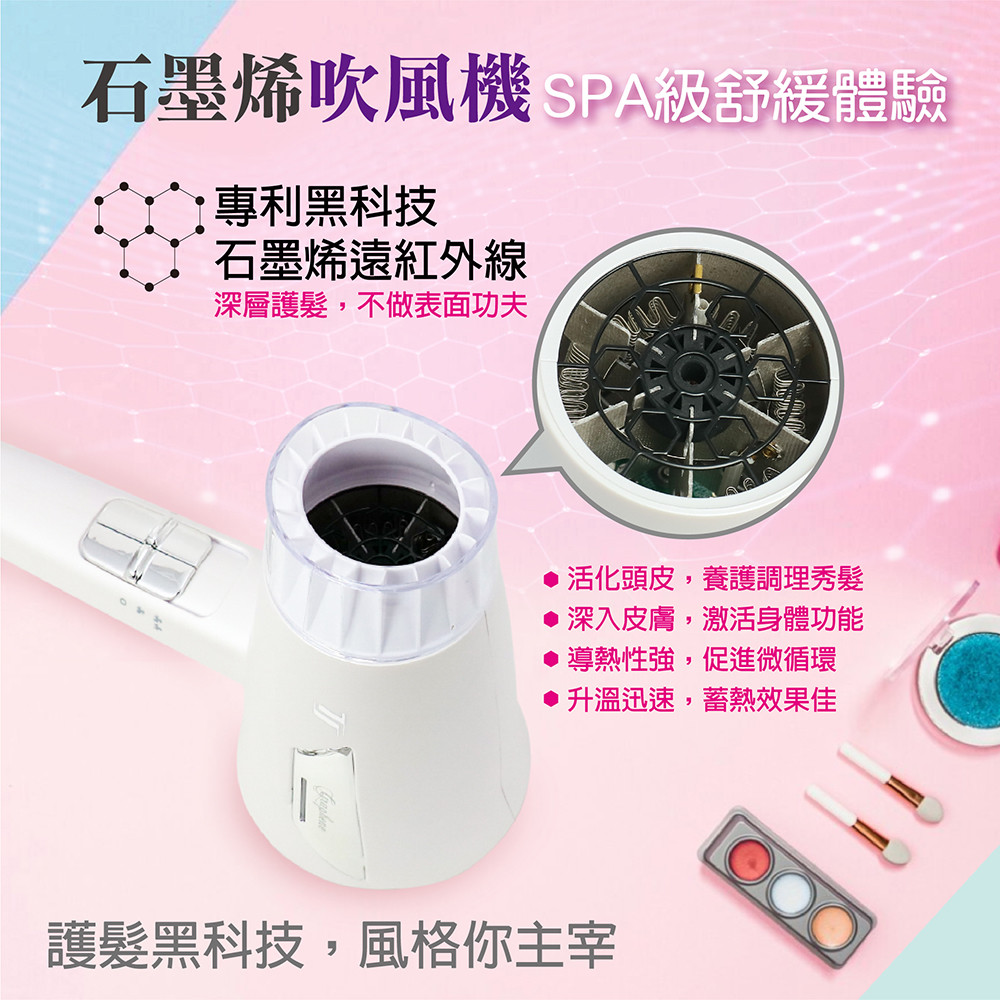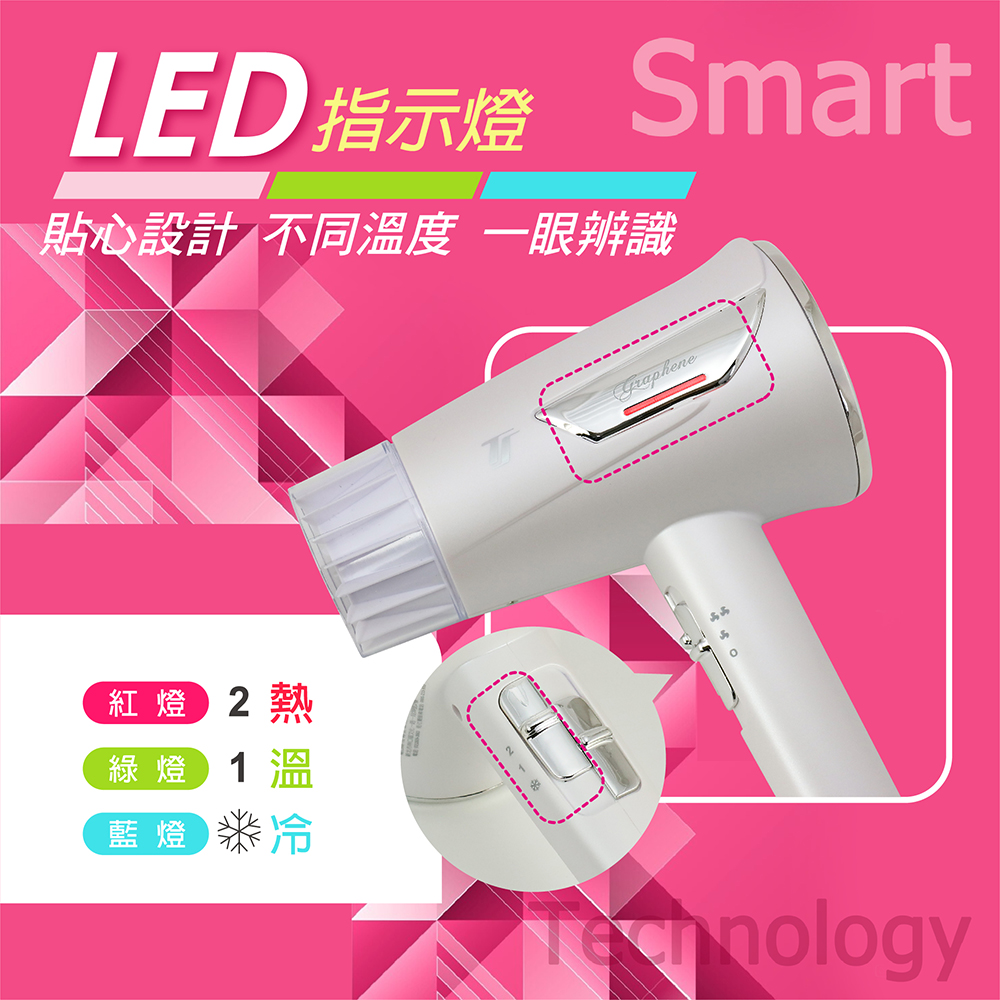 【達新牌】石墨烯遠紅外線水潤負離子吹風機(TS-6868)-珍珠白