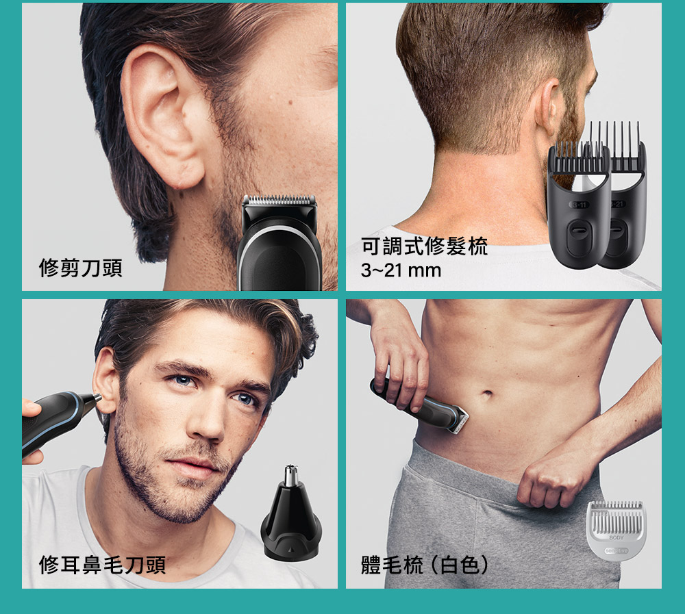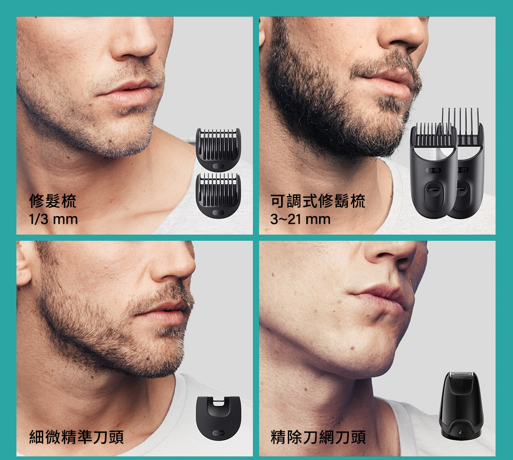 保證書/中文說明書/修剪刀頭/修耳鼻毛刀頭/修鬍梳1mm/修鬍梳3mm