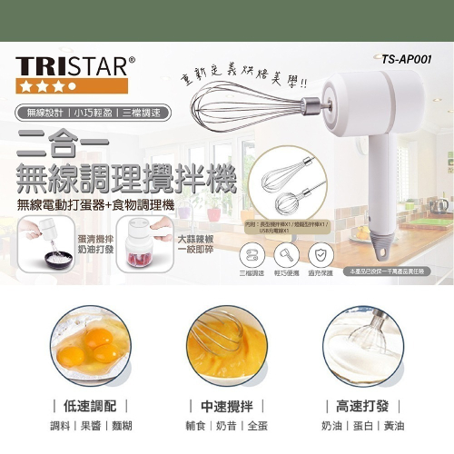 TRISTAR 二合一無線調理攪拌機 TS-AP001(粉紅/粉綠/白)
