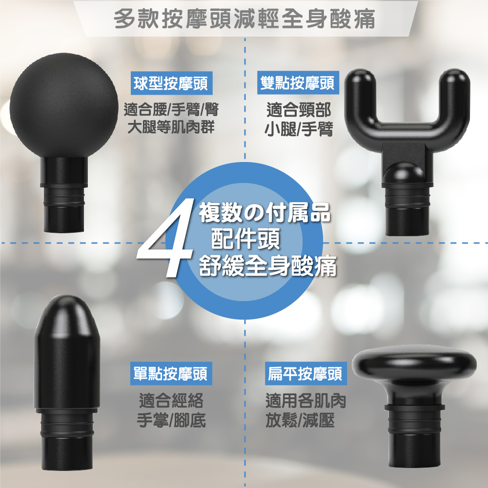 .配件:USB充電線、說明/保證書、功能按摩頭*4