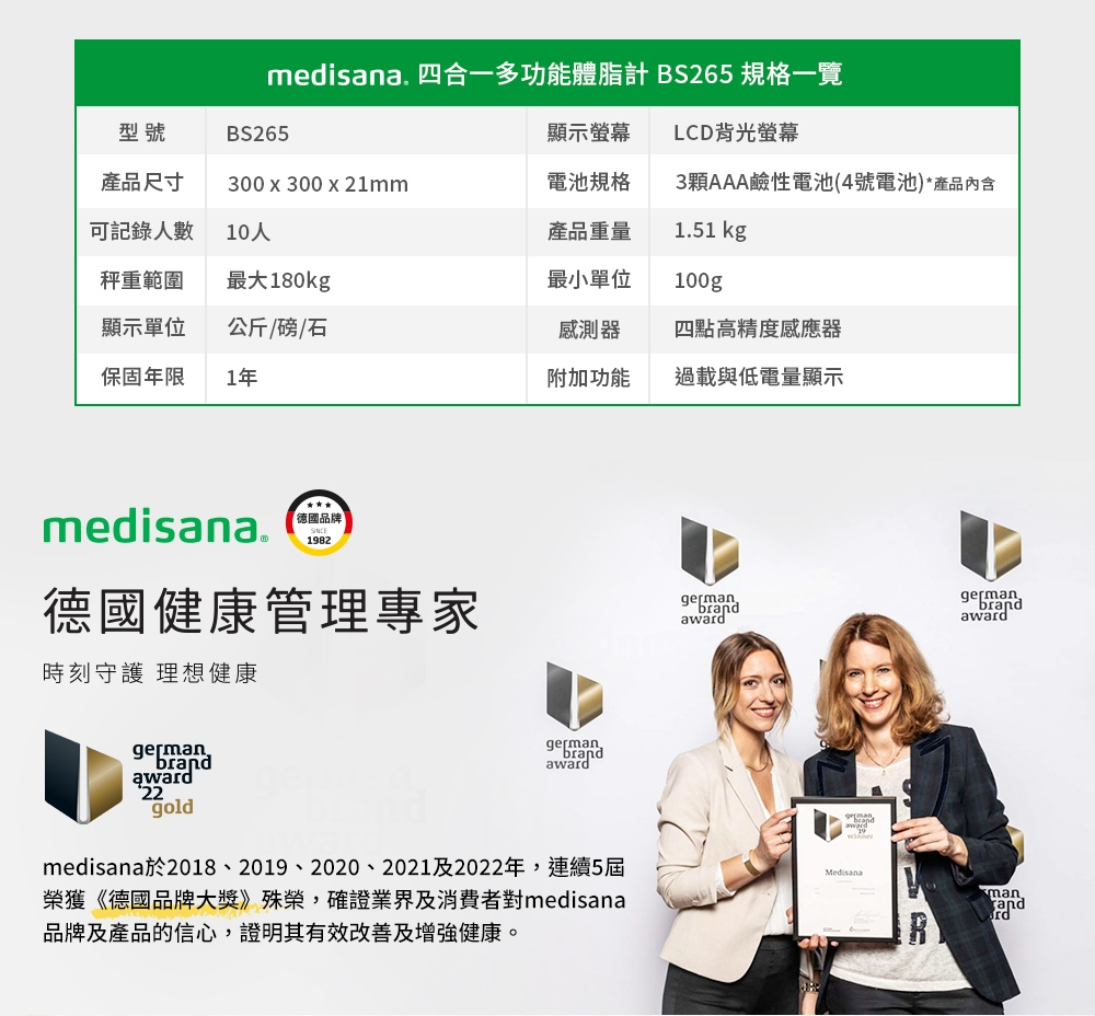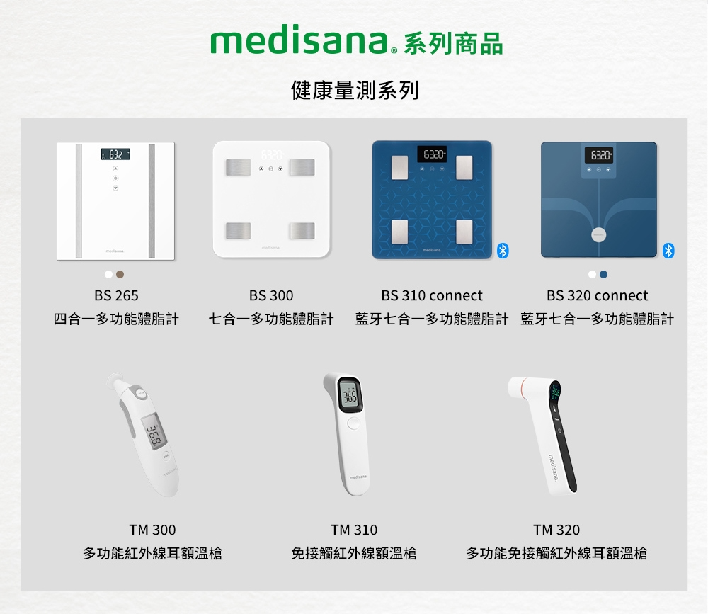 ※medisana體脂計系列不屬二級醫療器材管轄範圍,2022年12月9日法規調整,家用體脂計不算醫材範圍。