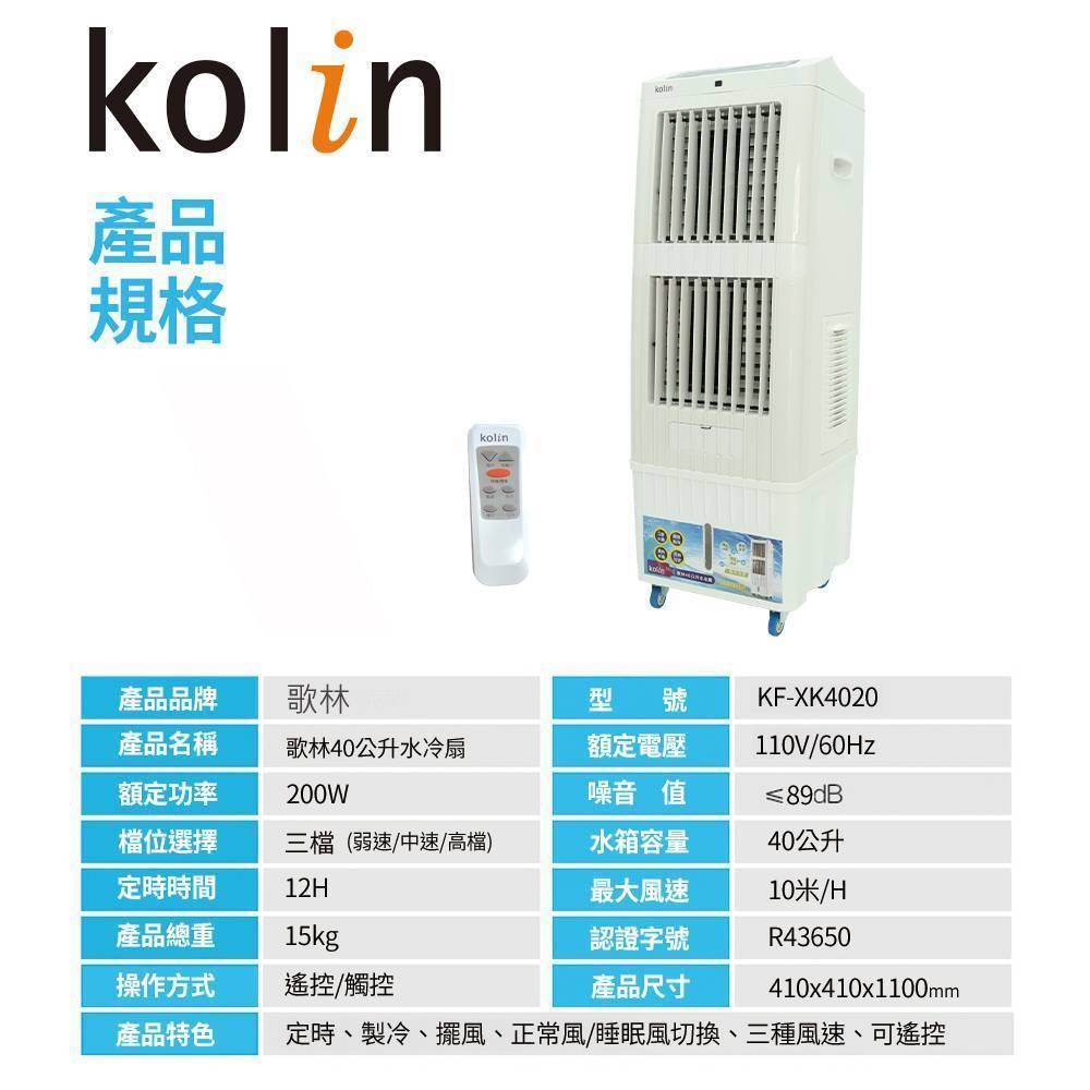 .品名:歌林40公升水冷扇