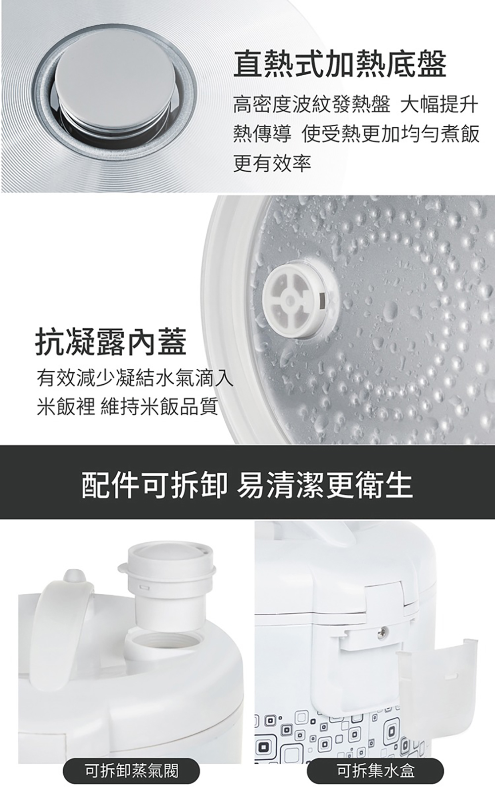 .配件:內鍋x1、飯匙x1、量杯x1、電源線x1、說明書x1、保固書x1
