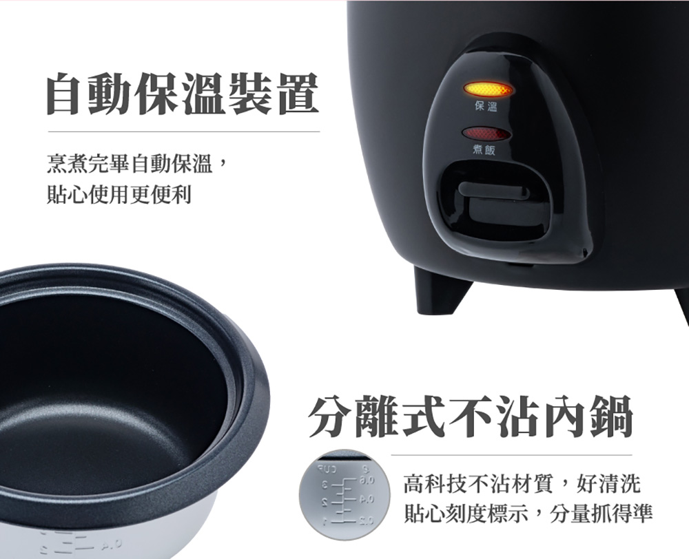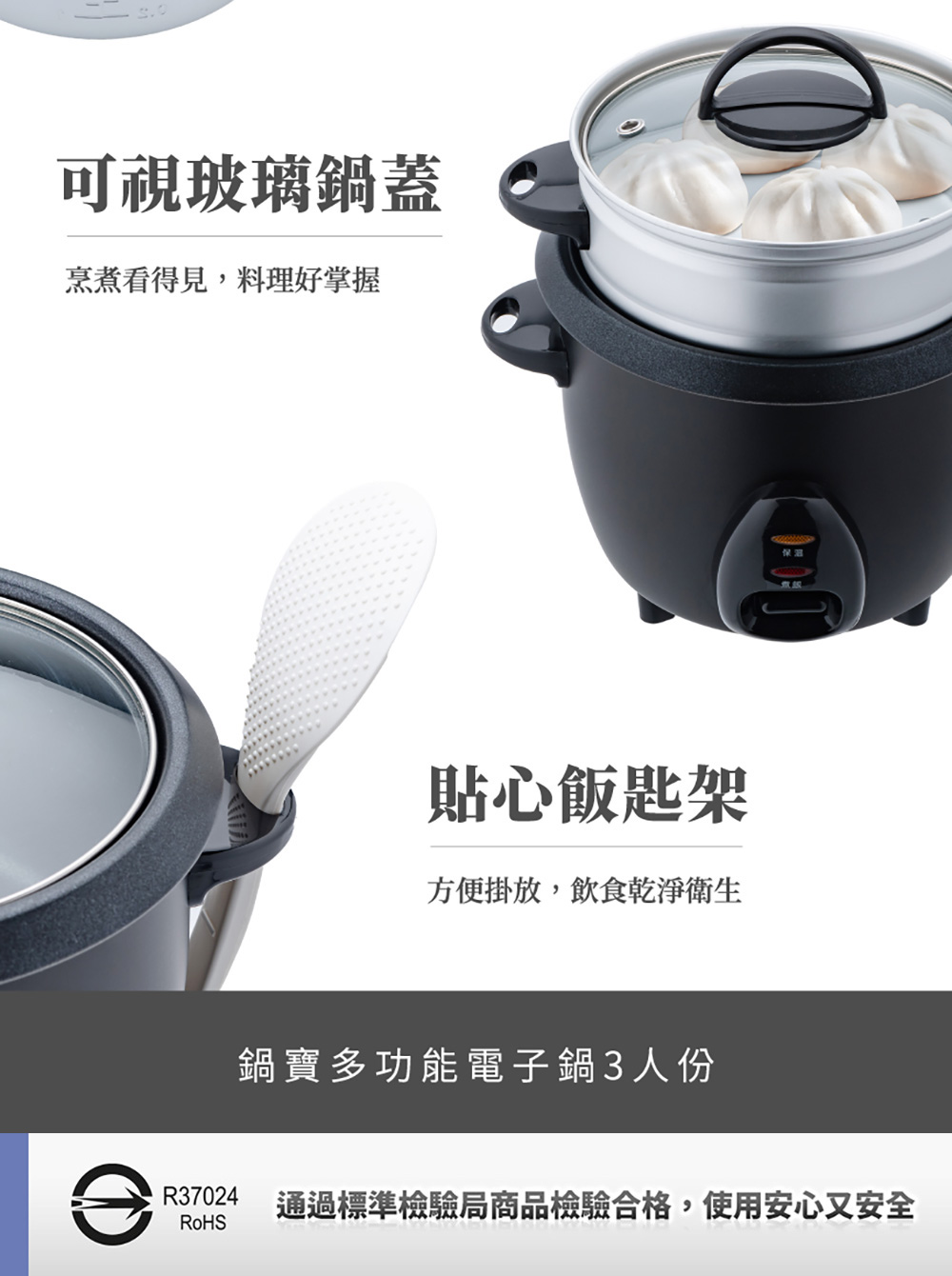 .配件:量杯1、飯匙1、蒸籠1、蒸架*1