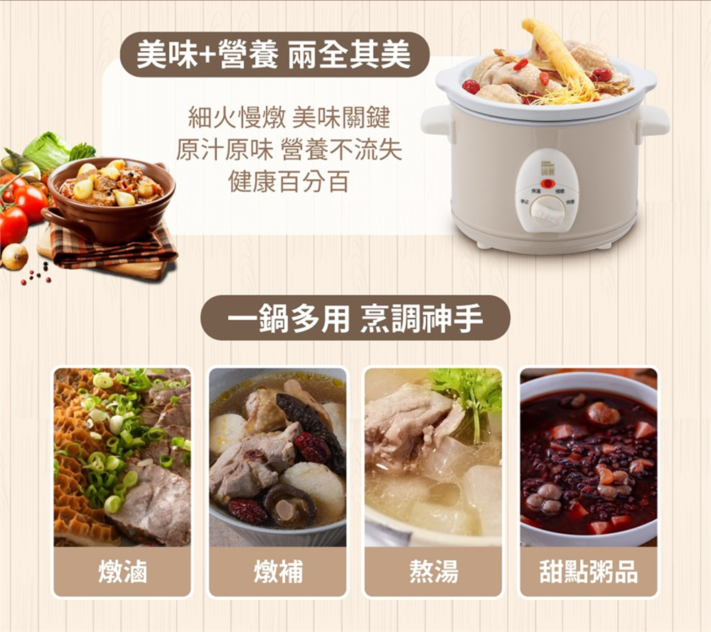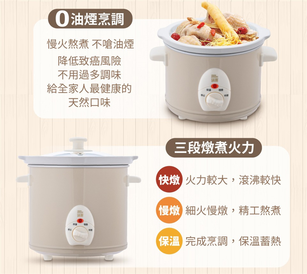 .總額定消耗電功率:快燉/200W、慢燉/120W、保溫/80W