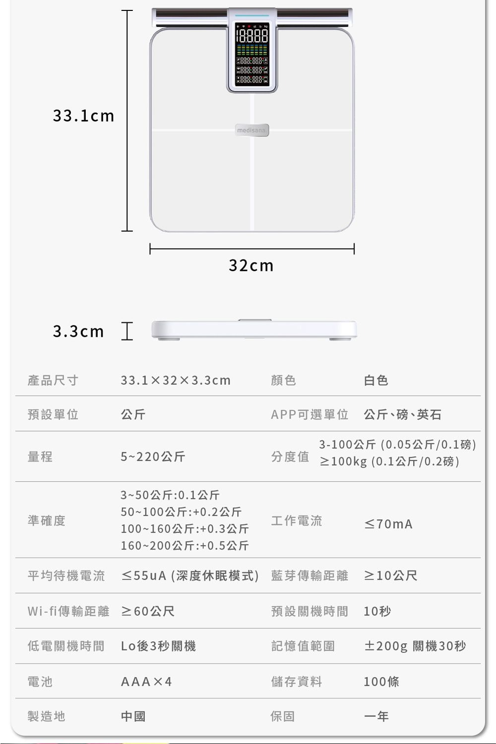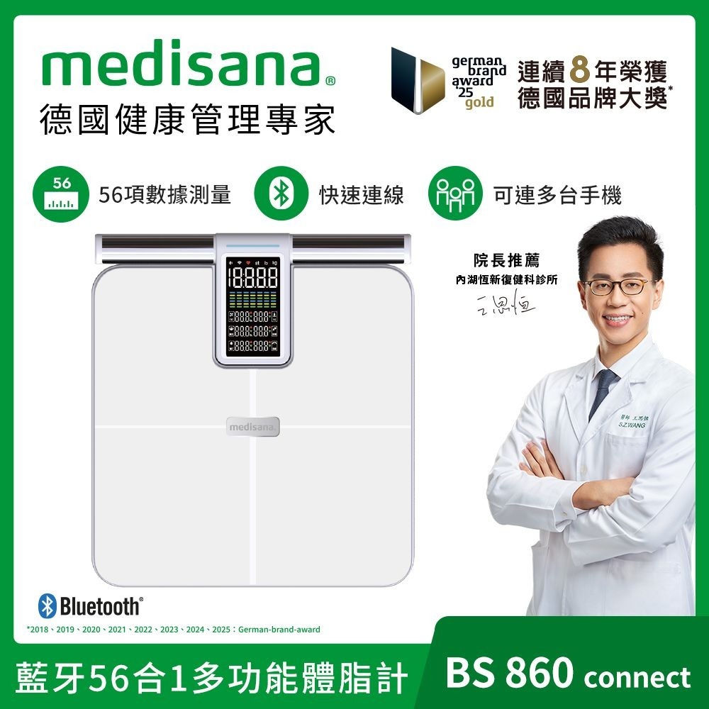 .品名:medisana 藍牙56合1多功能體脂計 BS860 connect
