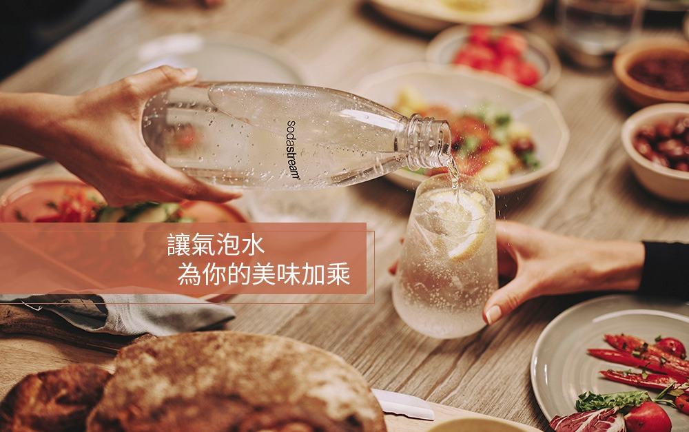 第一次使用時請先沖洗專用水瓶,開始製作氣泡水前,請先裝冷水 (裝至專用水瓶的滿水線),使用冰水風味更佳。