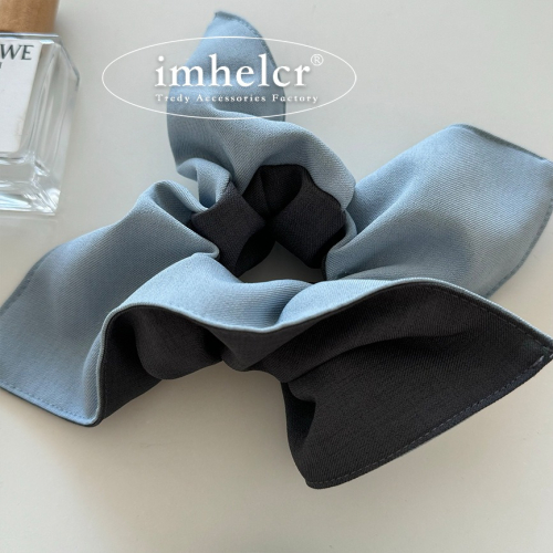〔現貨〕藍色灰色西裝面料 AB 面雙拼方巾髮圈