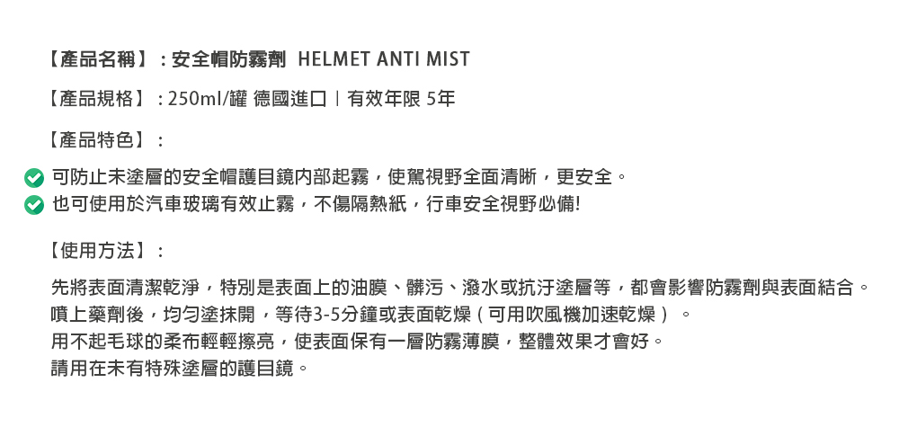 SONAX 安全帽防霧劑 250ml 護目鏡 鏡面防霧 快速除霧 止霧 雨天必備 機車 重機 安全帽 德國進口