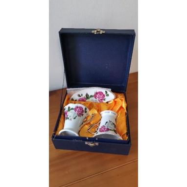 多年前廠商提供的樣品,存放倉庫超過25年,杯盤全新,從未使用過,外包裝盒不敵歲月摧殘,盒扣五金配件已生銹變色,介意的買家恕不接待。 現貨共六盒,盒內裝兩杯兩盤,杯子容量約50 ml,杯盤邊緣有稍微褪色及掉落,介意的買家恕不接待。 詳細尺寸請見相片所示。 其他賣場同步銷售中,喜歡的買家請先留言,看看寶貝還在不在?感謝! 可面交,面交地點,桃園市平鎮區7-11成達門市大門口。