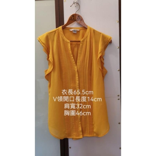 二手九成新女士夏季衣物,H&M Conscious鮮黃色低V領雪紡紗背心上衣一件,尺碼40號。領口開的低,可內搭細肩帶背心。二手衣物一定存在使用痕跡與些許小瑕疵,介意的買家恕不接待。 詳細尺寸請見相片所示。 其他賣場同步銷售中,喜歡的買家請先留言,看看寶貝還在不在?感謝! 可面交,面交地點,桃園市平鎮區7-11成達門市大門口。