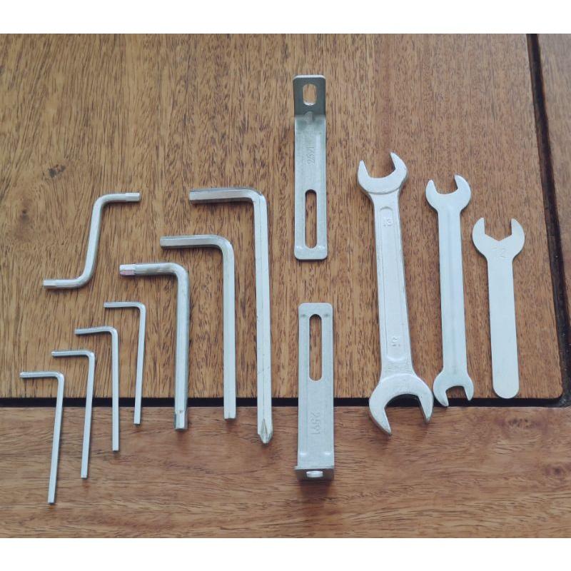 購買IKEA家具、家電、健身器材,隨貨附贈的五金工具,共13件,全部一起賣,售價100塊不含運費。 使用過一兩回,物件表面難免有劃痕、瑕疵,介意的買家恕不接待。 其他賣場同步銷售中,喜歡的買家請先留言,看看寶貝還在不在?感謝! 可面交,面交地點,桃園市平鎮區7-11成達門市大門口。