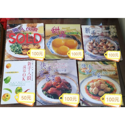 二手食譜共六本,作者:梁瓊白,每本售價、書名如下- 1.新手入廚萬事OK,售價50元。 2.甜品,售價100元。 3.快手宴客菜,售價100元。 4.新手食譜,售價100元。 5.快手家常菜,售價100元。 二手食譜難免有些許黃斑,介意的買家恕不接待。 中意哪一本,麻煩先留言,另開賣場再結帳,謝謝合作。 其他賣場同步銷售中,喜歡的買家請先留言,看看寶貝還在不在?感謝! 可面交,面交地點,桃園市平鎮區7-11成達門市大門口。