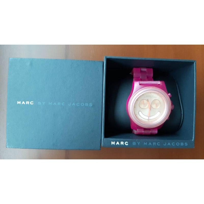 又是買了之後就放到忘記系列!!!全新精品手錶,Marc by Marc Jacobs微笑馬戲團玩色計時腕錶,桃紅色現貨一支,錶盤直徑約五公分。四年前購入之後從來沒戴過,已經完全沒電,買家需自行更換電池,介意者恕不接待。錶帶長度有調整過,多餘的錶帶會一起附上。 其他賣場同步銷售中,喜歡的買家請先留言,看看寶貝還在不在?感謝! 可面交,面交地點,臺北市文山區政治大學大門口。