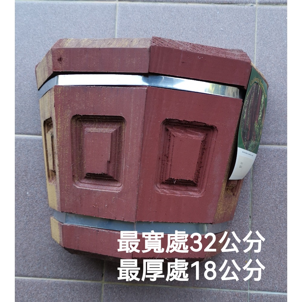 全新園藝用品,戶外加州紅木壁掛式花盆,整組商品包含,兩個塑膠內盆,一個木製外掛式花盆,現貨兩組,每組售價800元。