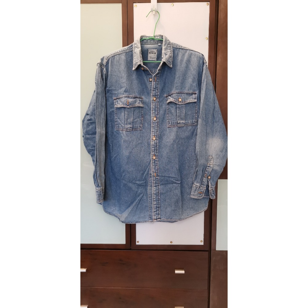 二手Edwin男士牛仔布長袖上衣,尺碼L號,袖口和前下擺少了兩顆釦子,二手衣物必定存在使用痕跡與些許瑕疵,介意的買家恕不接待。