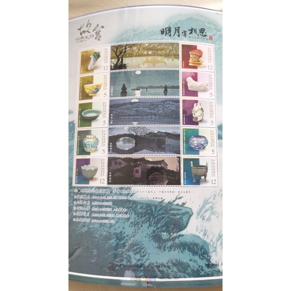 五套起售!!!全新故宮經典文物郵票,面值156元,出售商品包含信封套一個、郵票20張(12元郵票8張+5元郵票12張),每套售價130元。