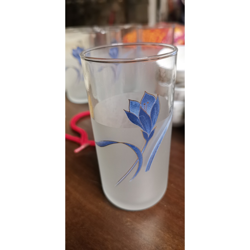 二手水杯,舊時光,復古霧面藍色花朵玻璃杯,一組六個打包一起賣,二手商品必定存在使用痕跡與小瑕疵,介意的買家恕不接待。
