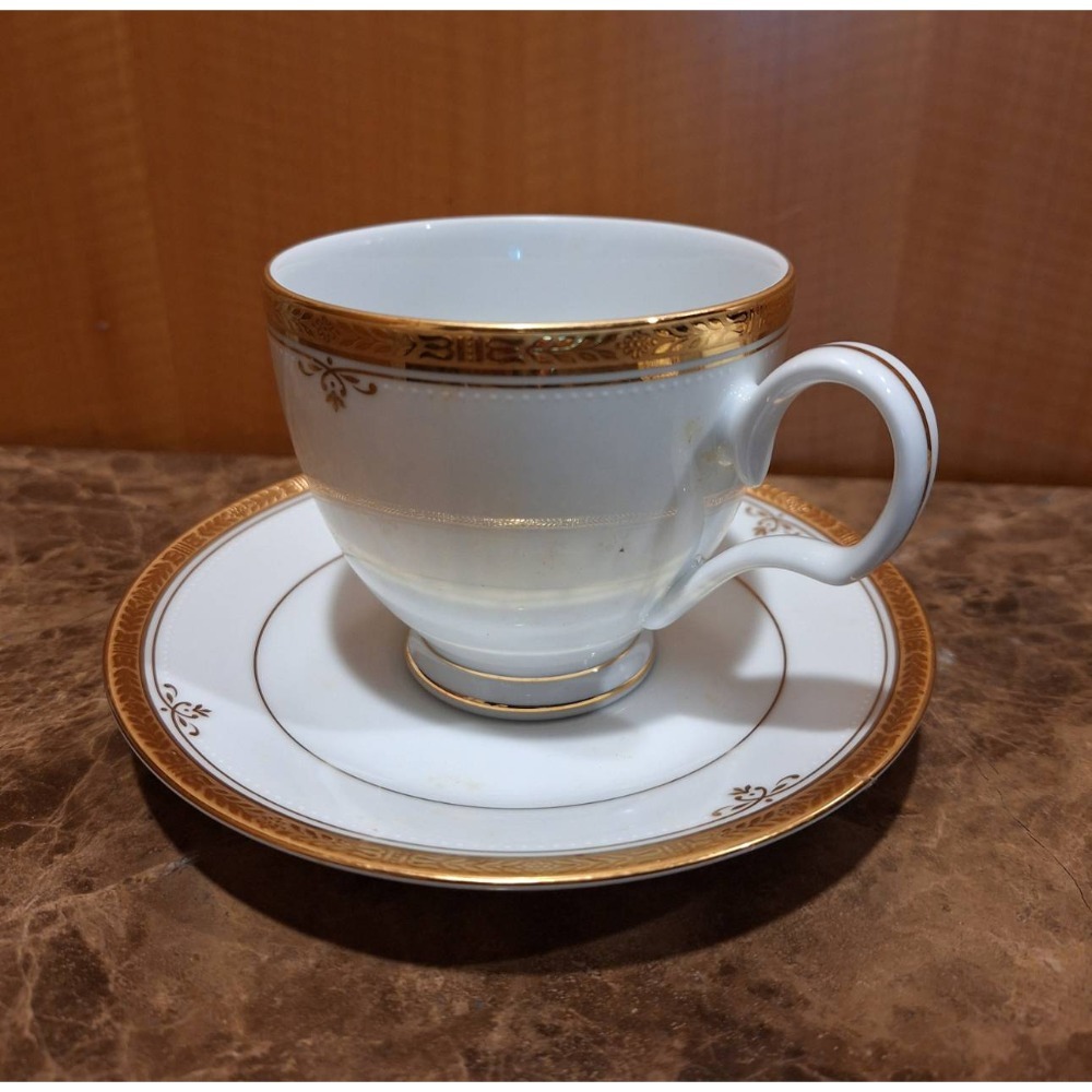 全新咖啡杯禮盒, 日本Noritake白色描金邊對杯組, 兩杯兩盤.