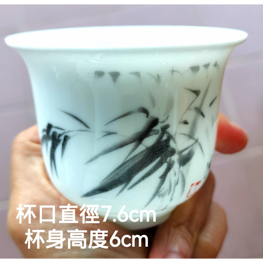 二手輕薄骨瓷茶杯,竹子圖案,五個打包一起賣,茶杯容量約100ml。