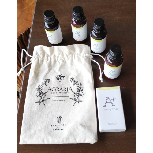 全新商品,AGRARIA/遠雄悅來飯店,檸檬草沐浴品旅行組,合計六件,打包出售,出售商品明細如下—