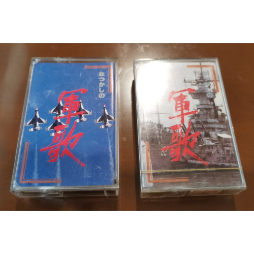 日本軍歌集錄音帶,第一集和第三集,兩盒打包一起賣,有新有舊,存放在倉庫裏很長一段時間,塑膠收納盒外觀有明顯髒污,需自行清潔,介意的買家恕不接待。