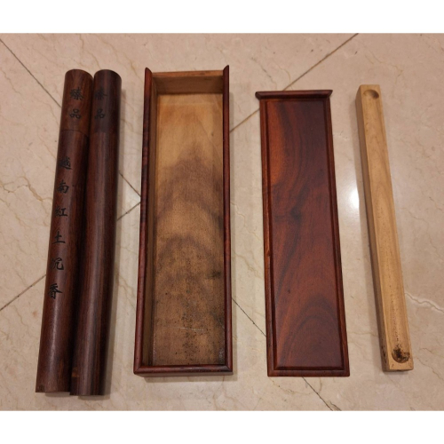 臻品越南紅土沉香, 紅木管裝線香兩管+臥香盒+臥香台, 四樣商品打包一起賣.