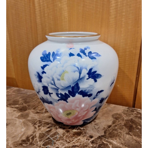 日本製造,幸山窯富貴牡丹圓球花瓶. 已無原始包裝木盒, 會另行謹慎打包寄出.
