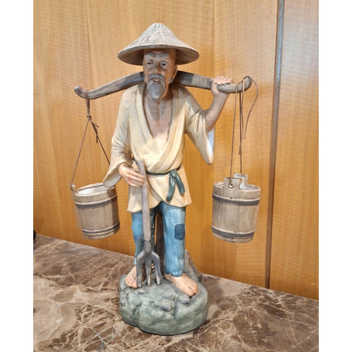 二手HOMCO陶偶, 肩挑水桶的老農夫. 無廠標.
