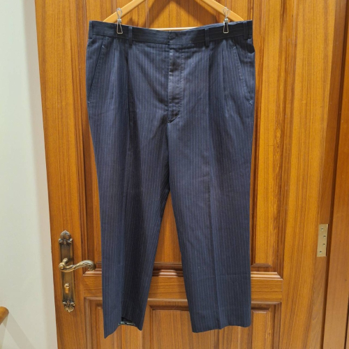 二手衣物, 訂製男士深藍色條紋毛料西裝褲, 二手衣物必定存在使用痕跡與瑕疵,介意的買家恕不接待.