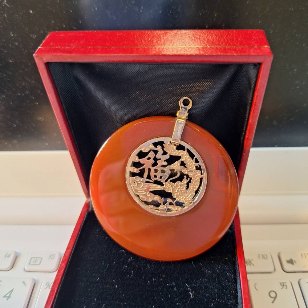 Vintage老收藏, 紅玉髓如意滿福項鍊墜子, 不含鏈條與收納盒子.