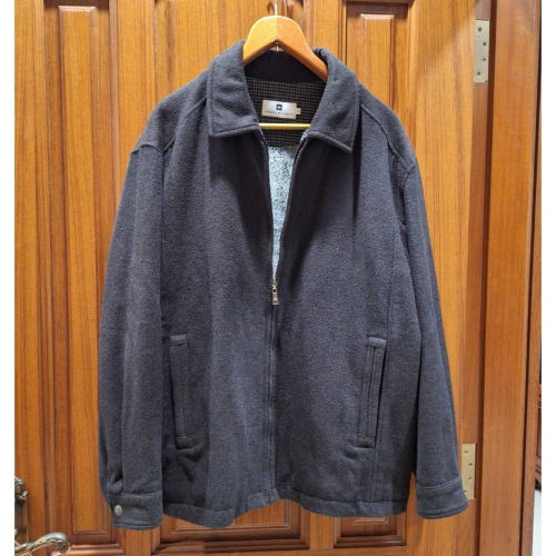 二手PIERRE BALMAIN男士冬季黑色中長版/拉鍊立領內刷毛保暖外套/60%羊毛, 尺碼3L號.