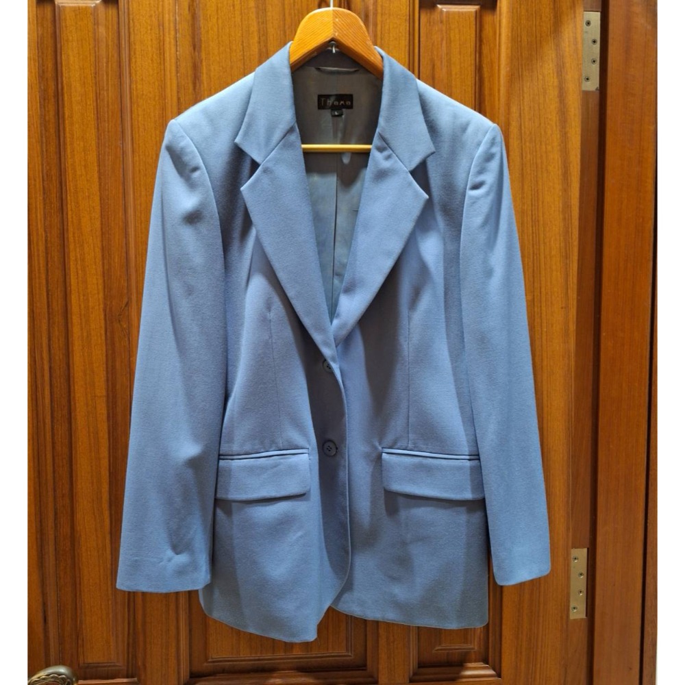 女士二手衣, Theme藍色100%羊毛西裝外套, 尺碼L號.