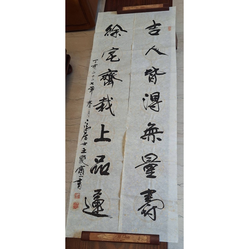 王雙寬書法對聯/吉人皆得無量壽、徐宅奇栽上品運, 未裱裝.
