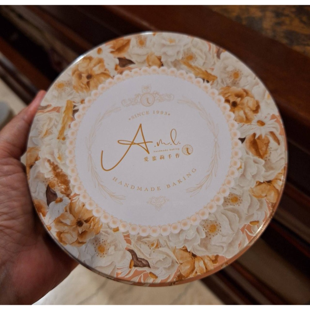 愛蜜莉手作餅乾圓形鐵盒一個, 商品尺寸:直徑15.4cm、厚度4.8cm.
