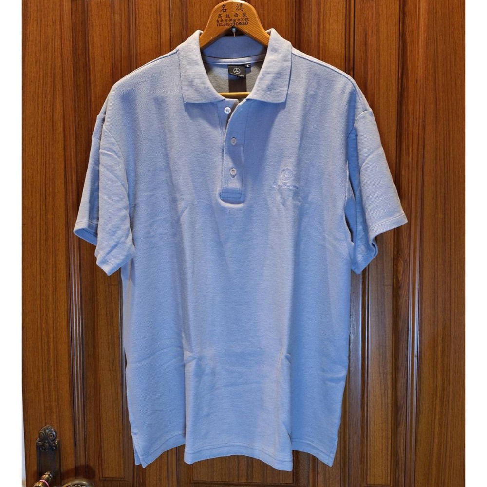 二手九成新Mercedes Benz男士短袖淺藍色條紋100%純棉Polo衫,尺碼L號.