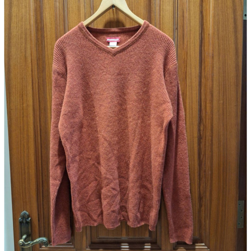 男士二手UNIONBAY磚紅色小V領羔羊毛毛衣, 尺碼M號.