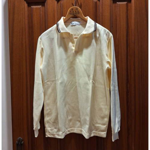 二手上衣,男士棉質長袖米黃色Polo衫,尺碼M號.