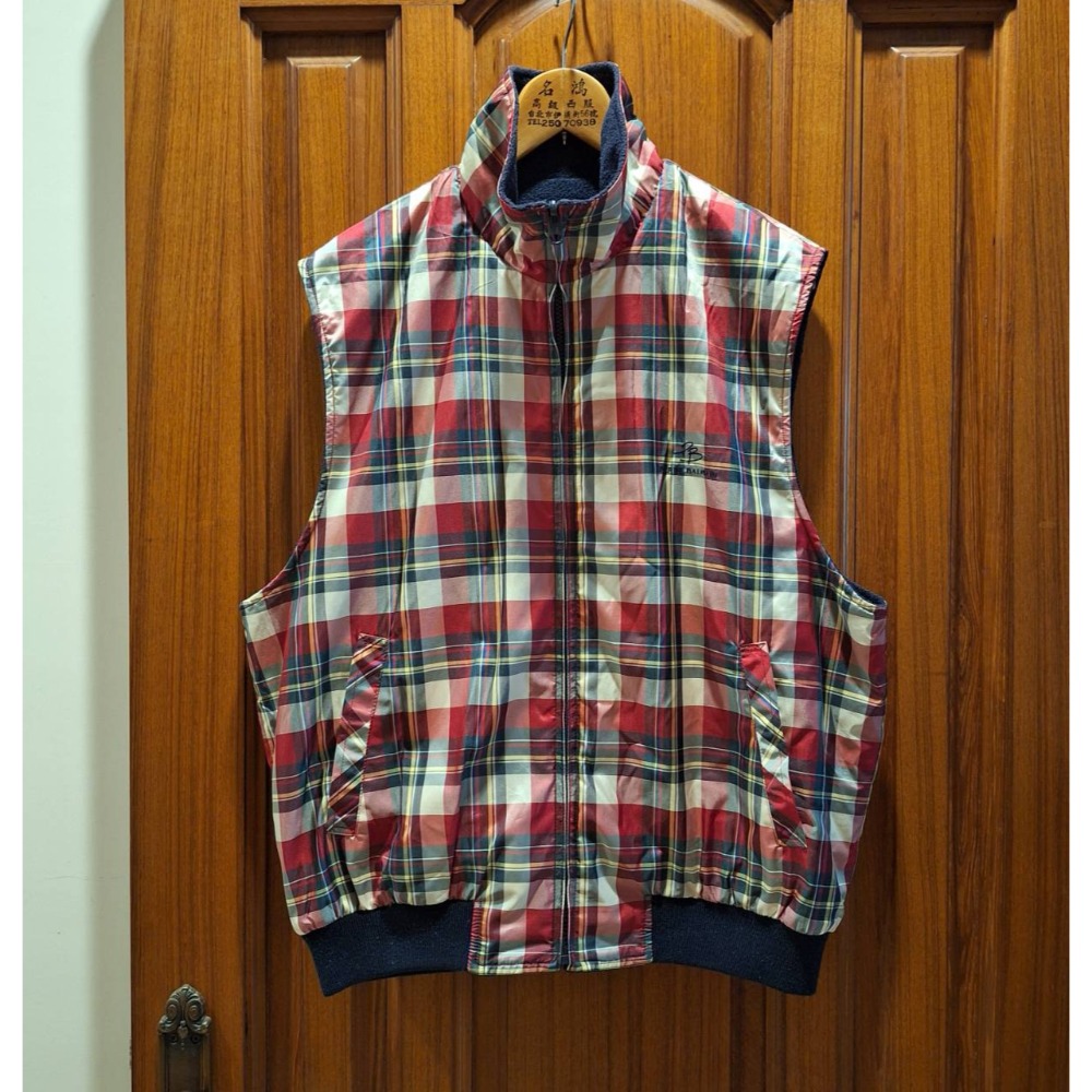 二手PIERRE BALMAIN男士秋冬季格紋/深藍色雙面穿拉鍊款立領刷毛背心, 尺碼L號.
