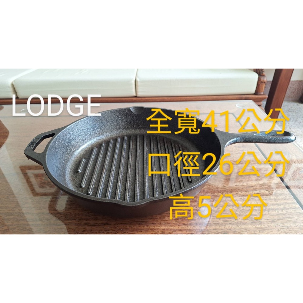 二手鑄鐵鍋,美國LODGE條紋平底煎鍋,口徑26公分。