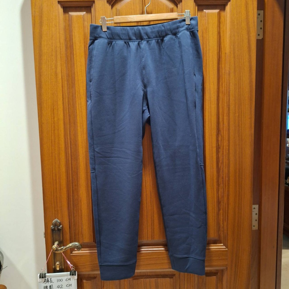 二手Uniqlo男士深藍色DRY束腳、鬆緊帶腰圍,彈性休閒褲(款式編號 341-465205), 尺碼L號.
