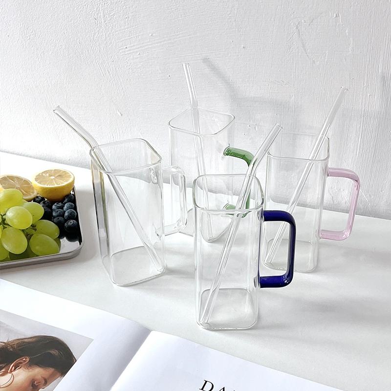 ★TiTi Choice 堤堤選居家生活★透明方形手把透明杯+玻璃吸管組 汽水杯 奶茶杯 酒杯(現+預)