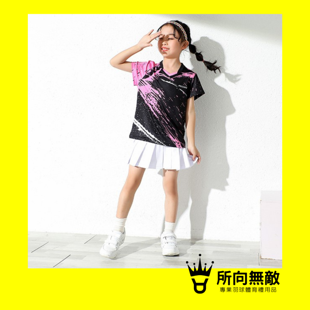 (現貨)所向無敵.邪惡粉紅專業兒童羽毛球上衣~兒童羽毛球衣 兒童羽球上衣 兒童羽球衣 兒童運動服 兒童羽球短袖 兒童短袖