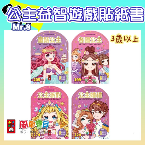 《公主益智遊戲貼紙書-童話公主》內含205張可重覆黏貼的貼紙,裡面也有不同的情境設計遊戲,可畫可寫,讓孩子幫童話裡出現的公主變裝,了解童話世界,也能解謎題,看童話,在遊戲中學習!