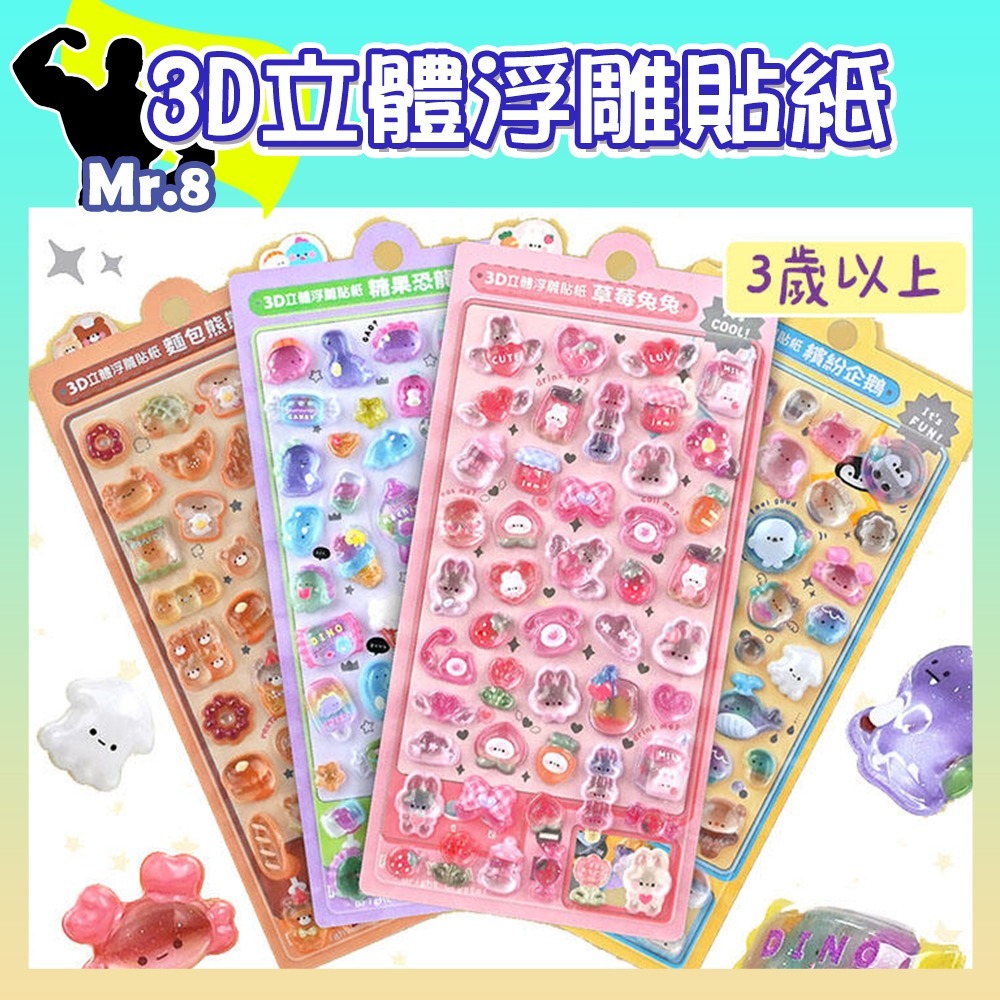 3D立體浮雕貼紙-麵包熊熊/糖果恐龍/草莓兔兔/繽紛企鵝文創貼紙