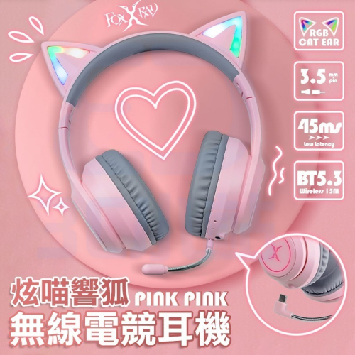 【3C小站】炫喵響狐 無線電競耳機 粉色電競耳機 萌萌貓耳 藍牙+有線 兩用 電競耳機 超低延遲 無線耳機 藍芽耳機