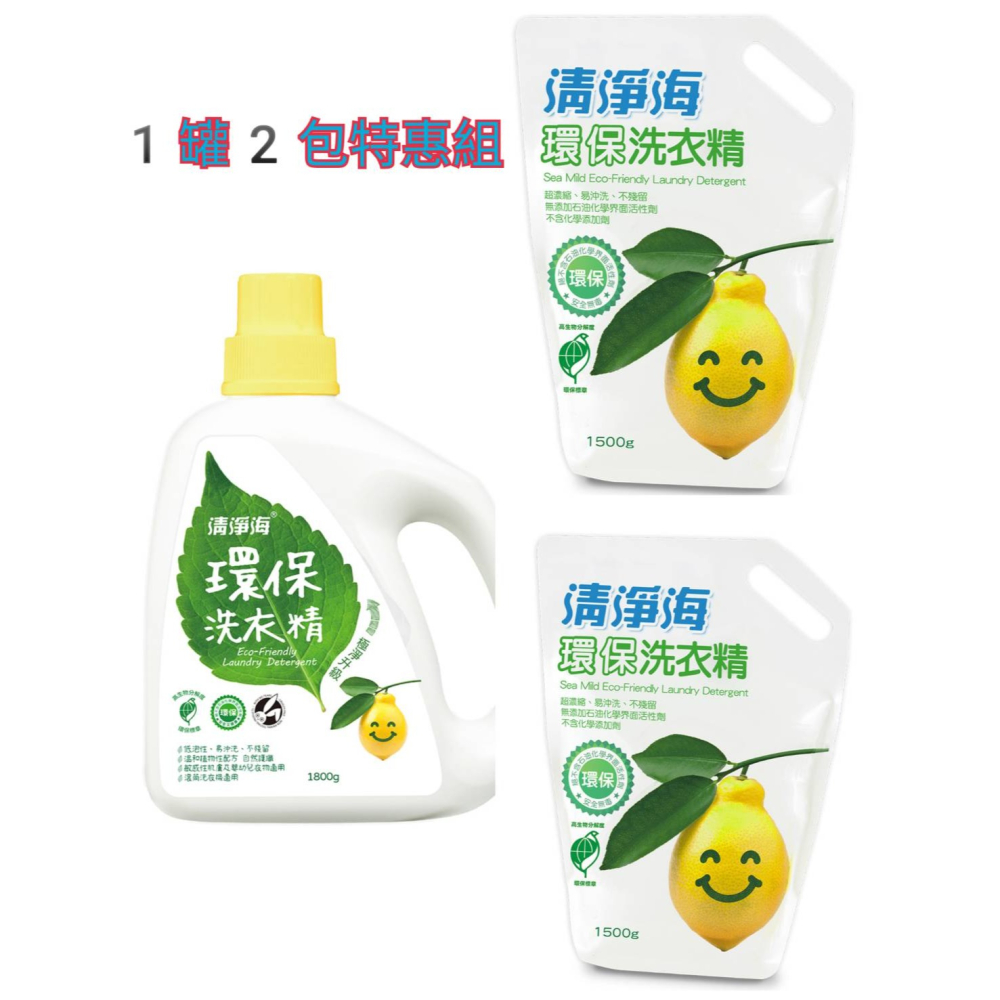 清淨海 環保洗衣精1罐1800ml+2包補充包1500g