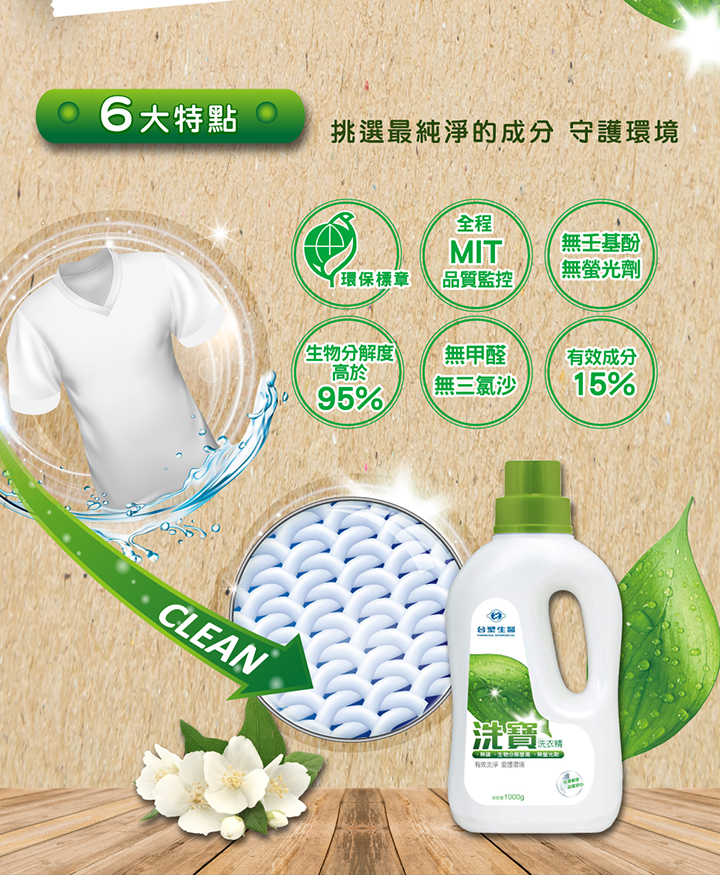 台塑生醫-洗寶環保洗衣精 1000g/瓶 環保標章洗衣精 台塑生醫洗衣精 台塑洗衣精